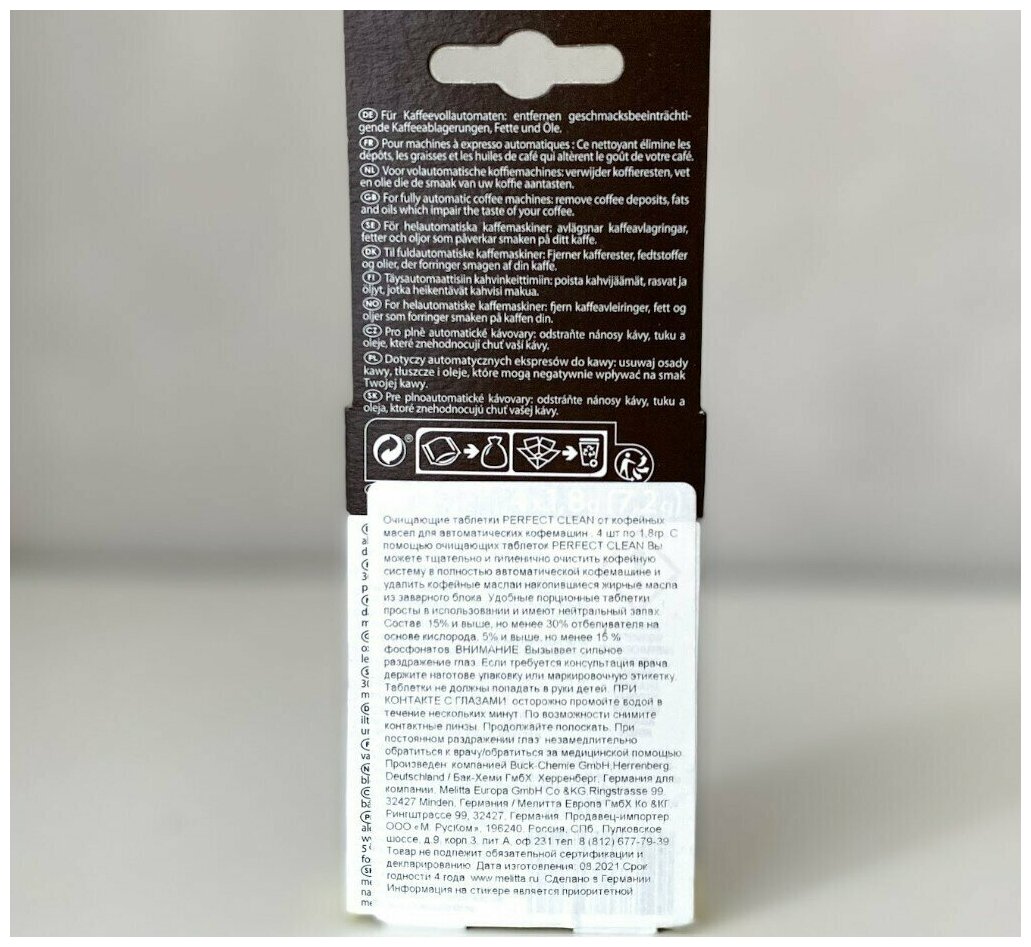 Средство (таблетки) очистки Melitta Perfect Clean Tabs кофемашин для удаления кофейных масел и жира информация: