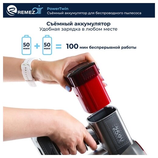 Аккумулятор Power Twin для вертикального беспроводного пылесоса REMEZ MultiClick PRO RMVC-503/ RMVC-504 4 990 ₽