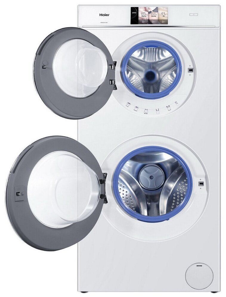 | Дополнительная информация | кипячение, постельное бельё, полотенца, объёмные вещи, рубашки, занавески, цветные ткани, освежающий цикл, своя программа, самоочистка; дисплей FULL Touch; барабан с подсветкой Pillow Drum; нижний барабан: загрузка 8 кг (стирка), 4 кг (сушка), скорость отжима 1500 об/мин, количество программ 20, объем барабана 54 л; верхний барабан: загрузка 4 кг, скорость отжима 1200 об/мин, количество программ 12, объем барабана 26 л; потребление энергии для мойки, вращения и сушки 8,14 кВтч / полный рабочий цикл; управление со смартфона: wi-fi, приложение для управления Haier U+ |