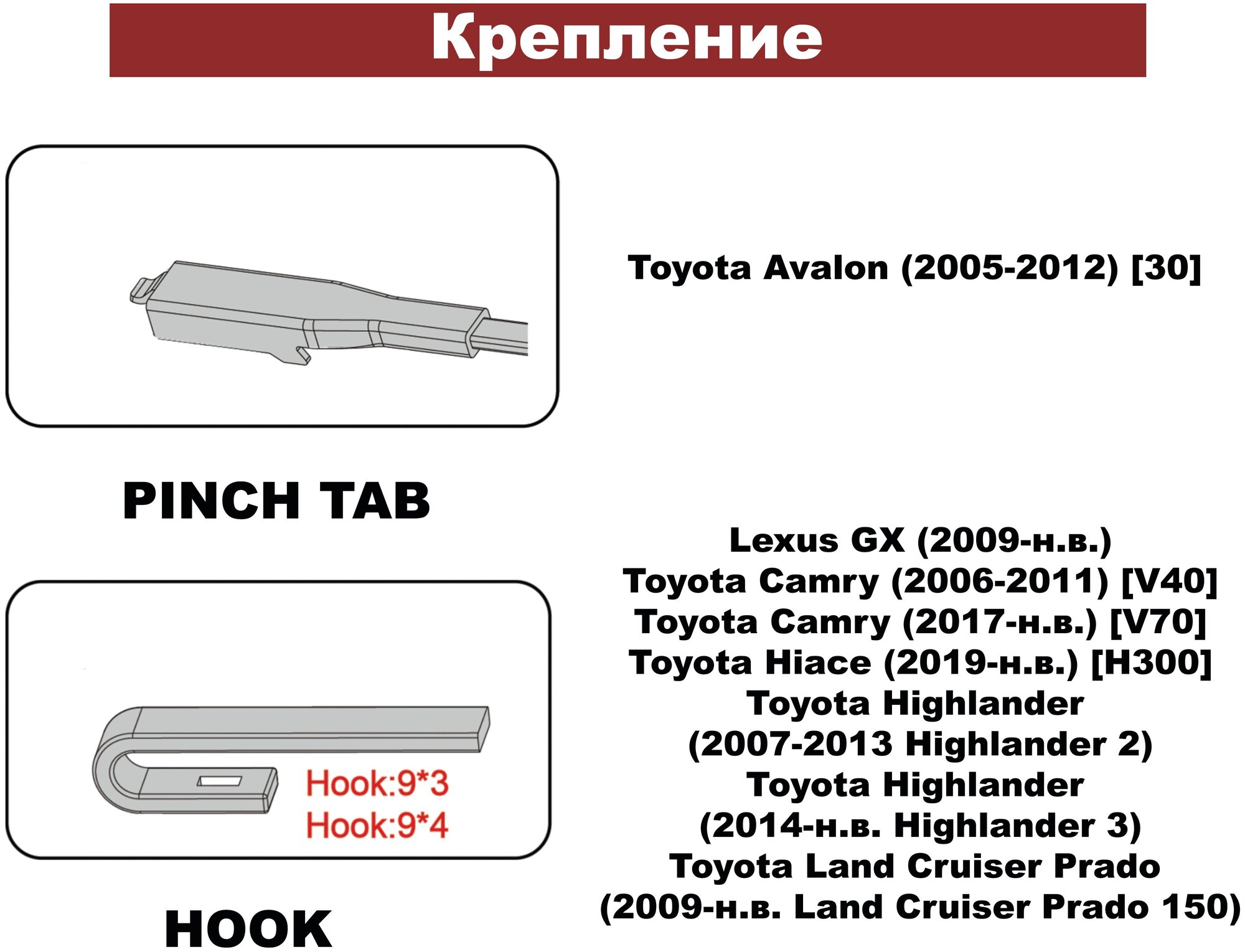 | Модель автомобиля | Lexus GX / Toyota Avalon / Toyota Camry / Toyota Hiace / Toyota Highlander / Toyota Land Cruiser Prado |