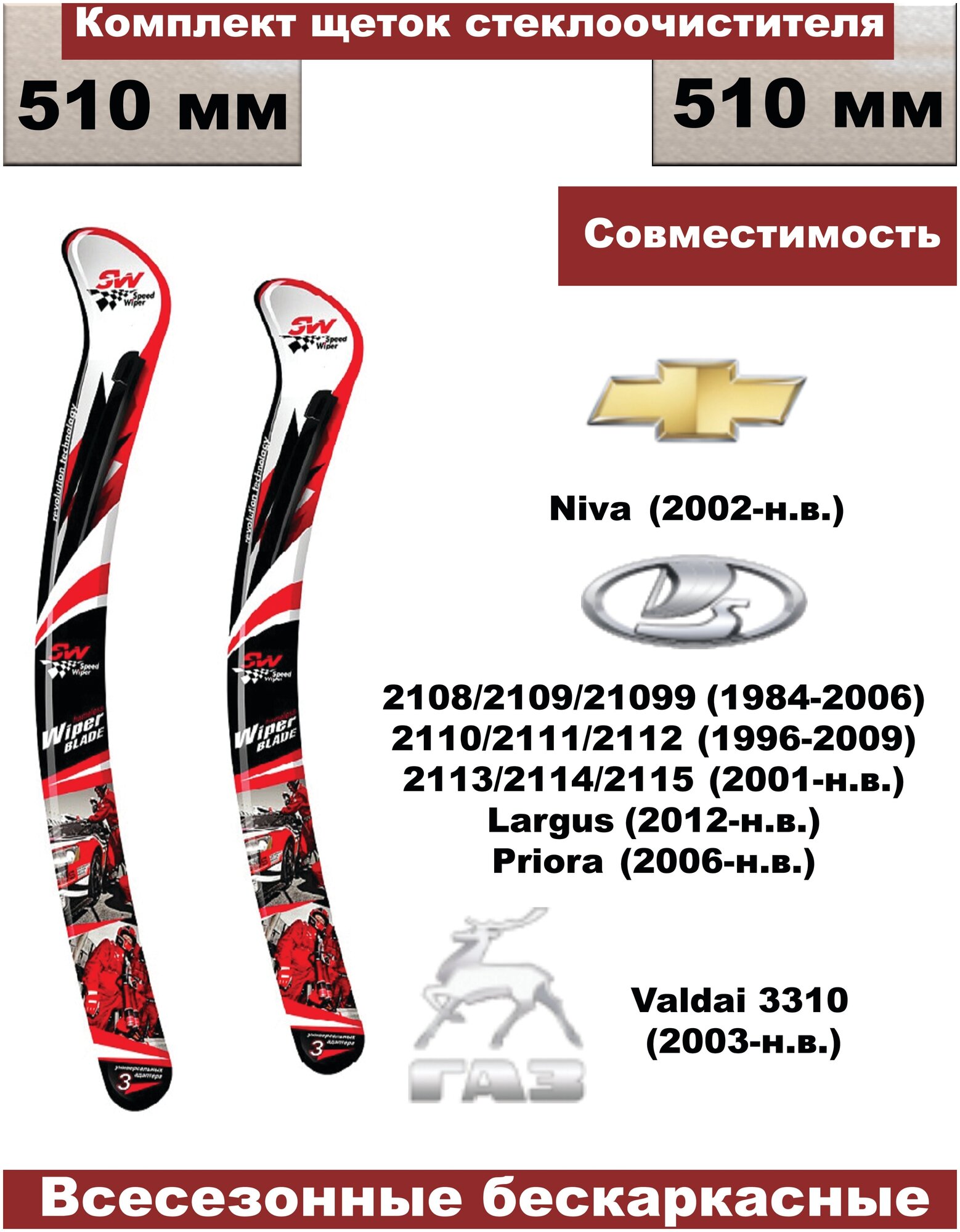 Комплект бескаркасных щеток стеклоочистителей Chevrolet Niva; Lada [ВАЗ]; Largus, Priora; ГАЗ информация: