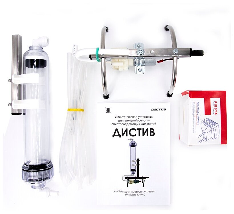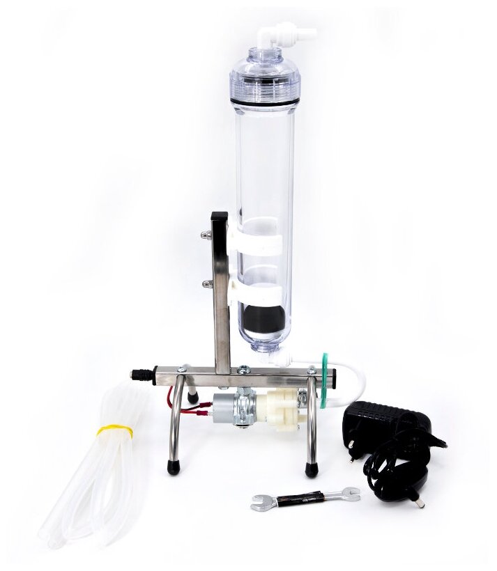 | В комплекте | металлический каркас из пищевой нержавеющей стали / мембранная помпа / прозрачная колба для засыпки фильтрующего состава с фильтр-шайбой из вспененного пенополиуретана / силиконовые шланги / блок питания с кнопкой включения /выключения |
