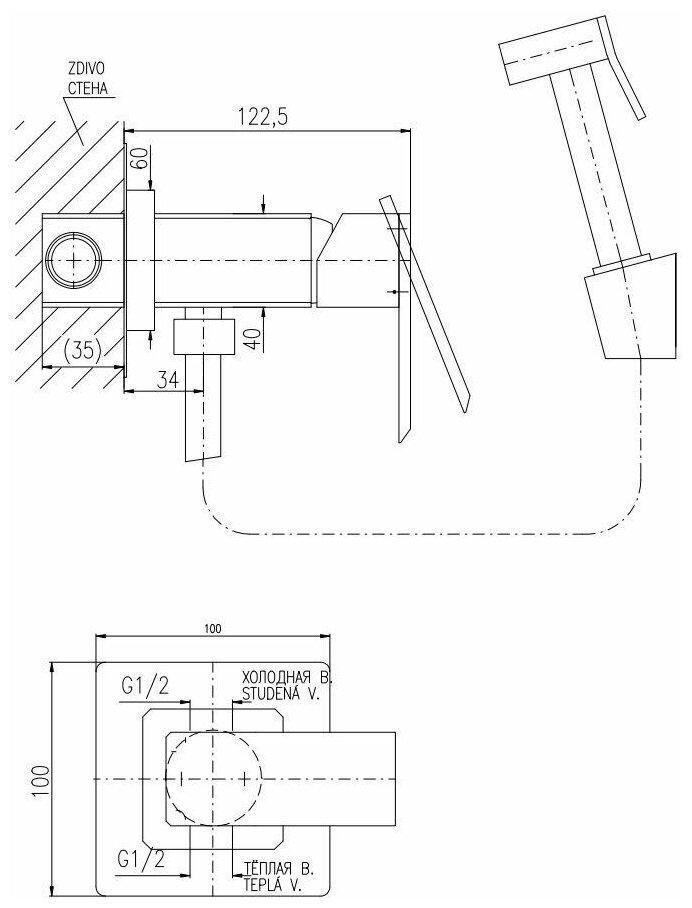 RAV Slezаk LOIRA LR547/1 Смеситель для биде, включая тело скрытого монтажа, держатель пласт, душевой лейкой с нажимным механизмом метал.