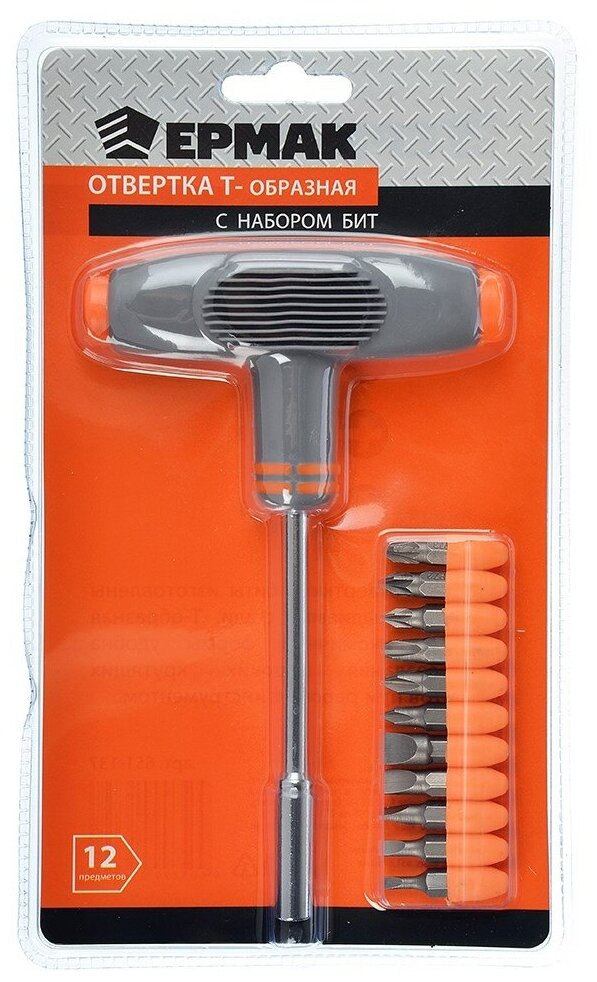 Отвертка ермак 651-137 Т-образная с набором бит 11 предметов информация:
