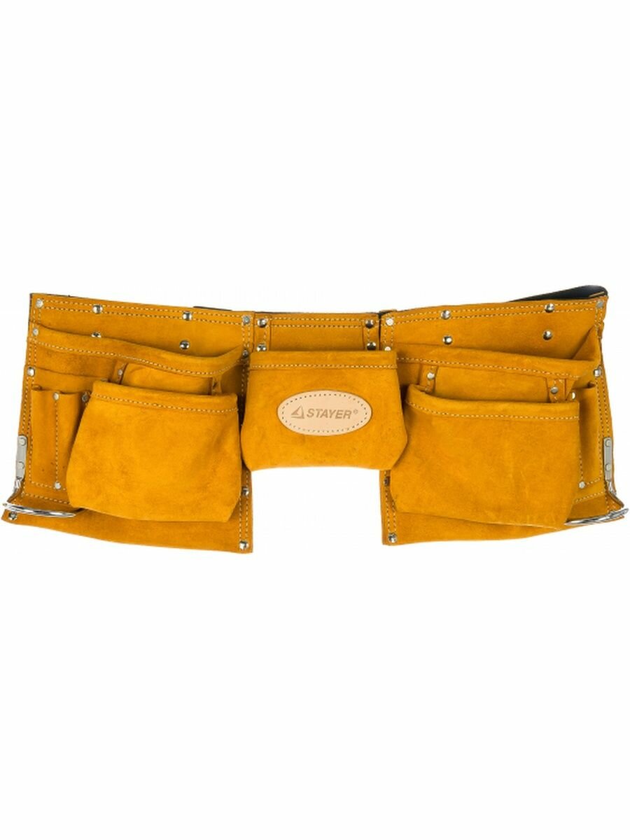 STAYER кожаный, 11 карманов, 2 скобы, пояс для инструментов (38520)