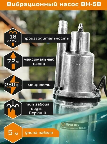 Погружной насос Вихрь ВН-5В, вибрационный, 68/8/7