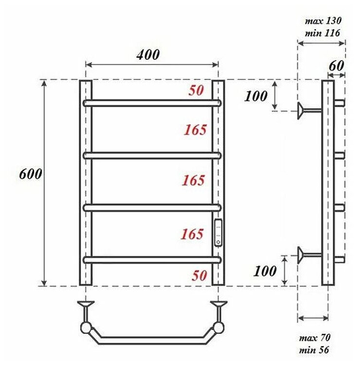 Электрический полотенцесушитель POINT PN06846 П4 400x600 Э (диммер справа) хром информация: