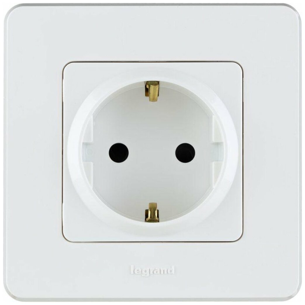 Legrand INSPIRIA Белый Розетка 1-местная с заземляющими контактами со шторками IP20 скрытая установка 673730