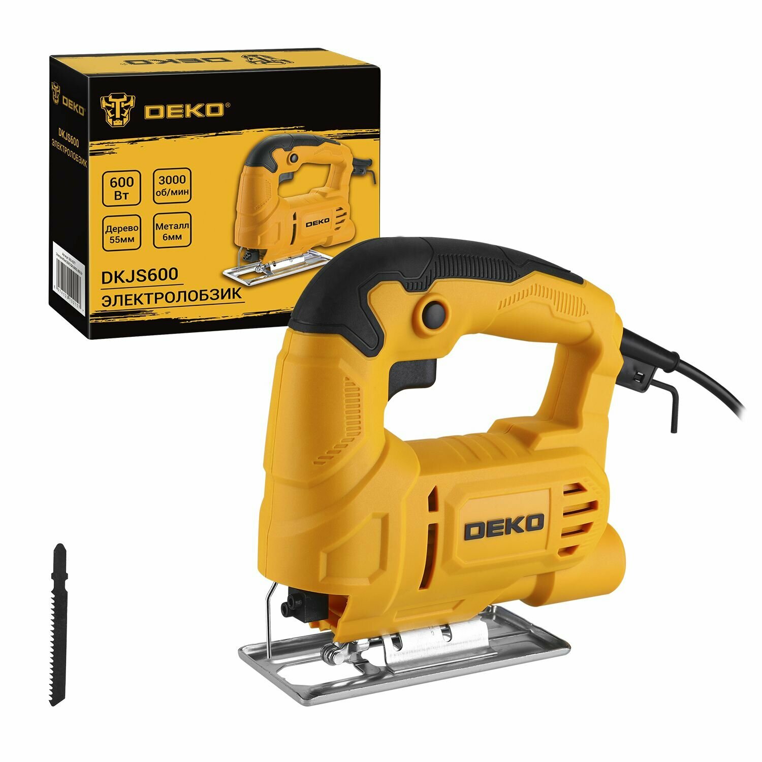 | Комплектация | электролобзик DEKO DKJS600 (1 шт.), лезвие (1 шт.), шестигранный ключ (1 шт.), параллельный упор (1 шт.) |
