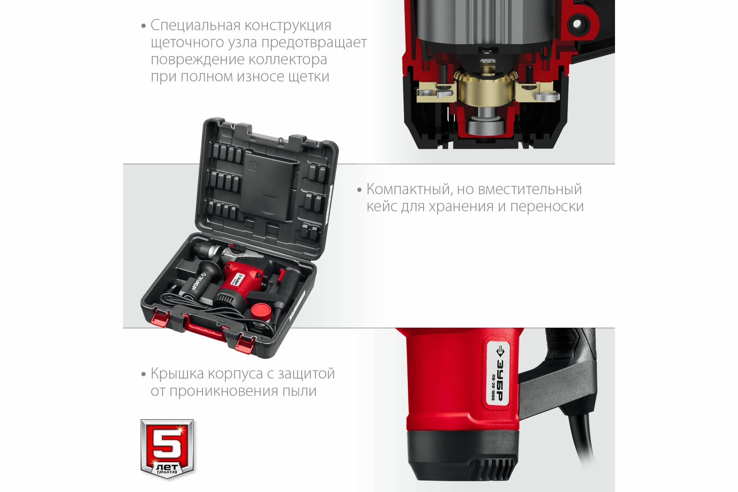 Перфоратор Зубр ПВ-28-1000 (1000 Вт, 4 Дж)
