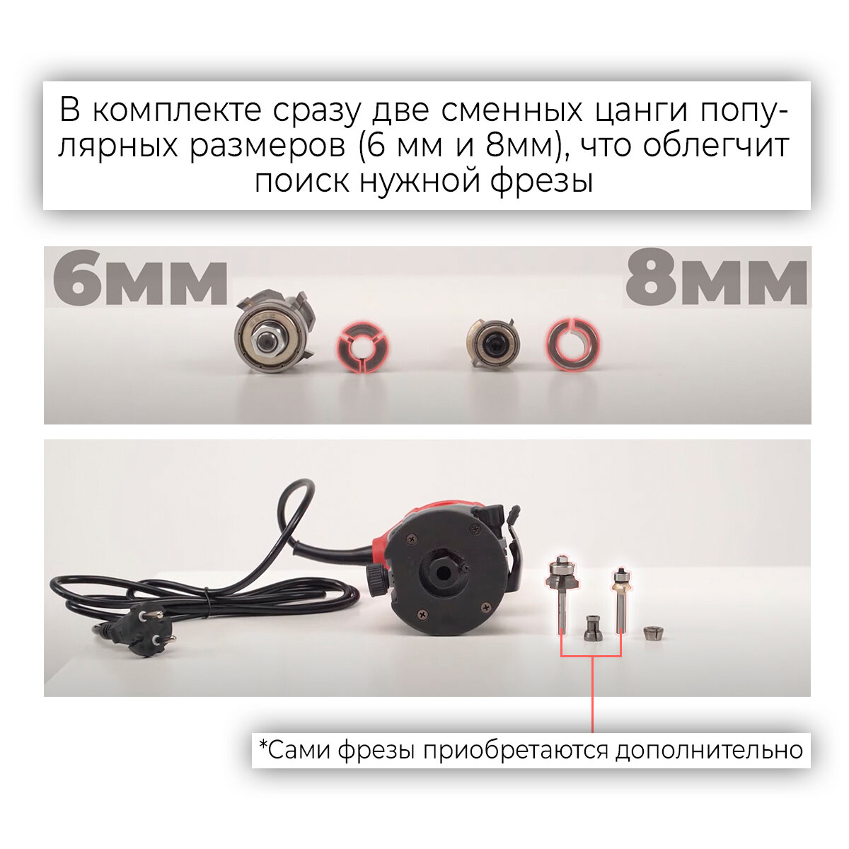 | Размер цанг в комплекте | 6мм и 8мм |