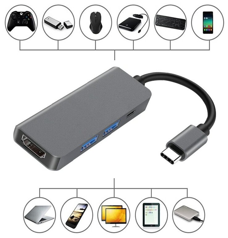 10 цен на Хаб Palmexx 4в1 USB-C to HDMI+2*USB3.0+USBC