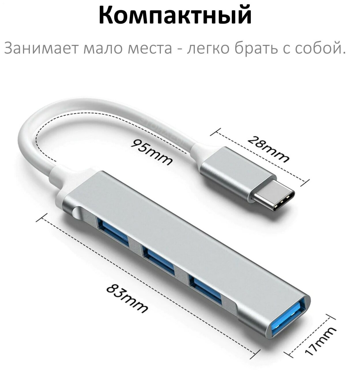 Переходник концентратор для MacBook, 4 порта, Type-C - USB 3.0 и 2.0, / Хаб для ноутбука с USB-C на USB-A информация: