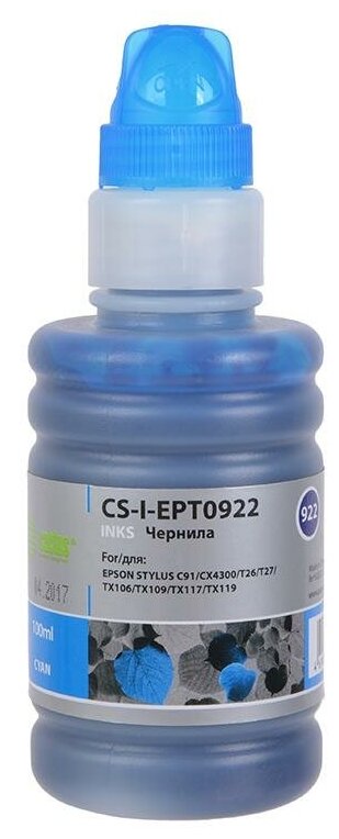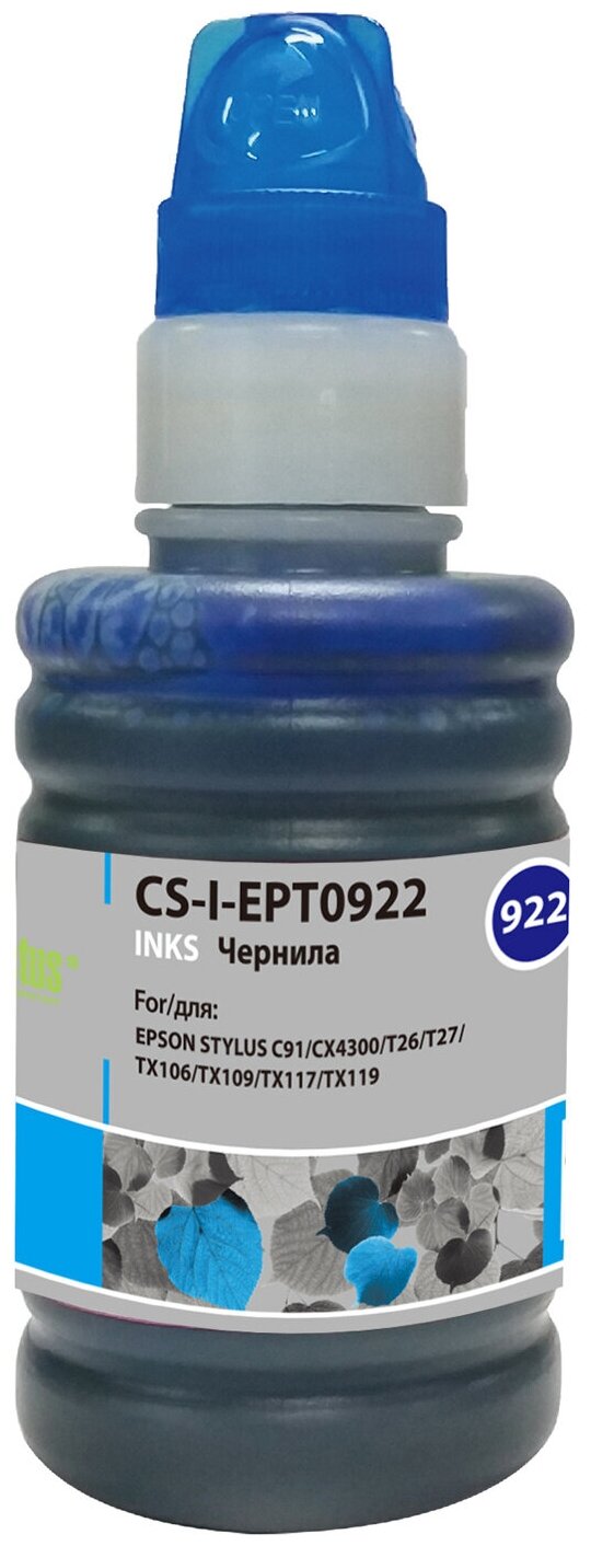 Чернила Cactus CS-I-EPT0922 голубой 100мл для Epson St C91CX4300T26T27TX106TX109