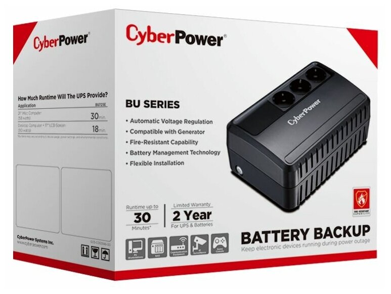 ИБП CyberPower BU725E 725 VA, EURO, розеток - 3 7 119 ₽