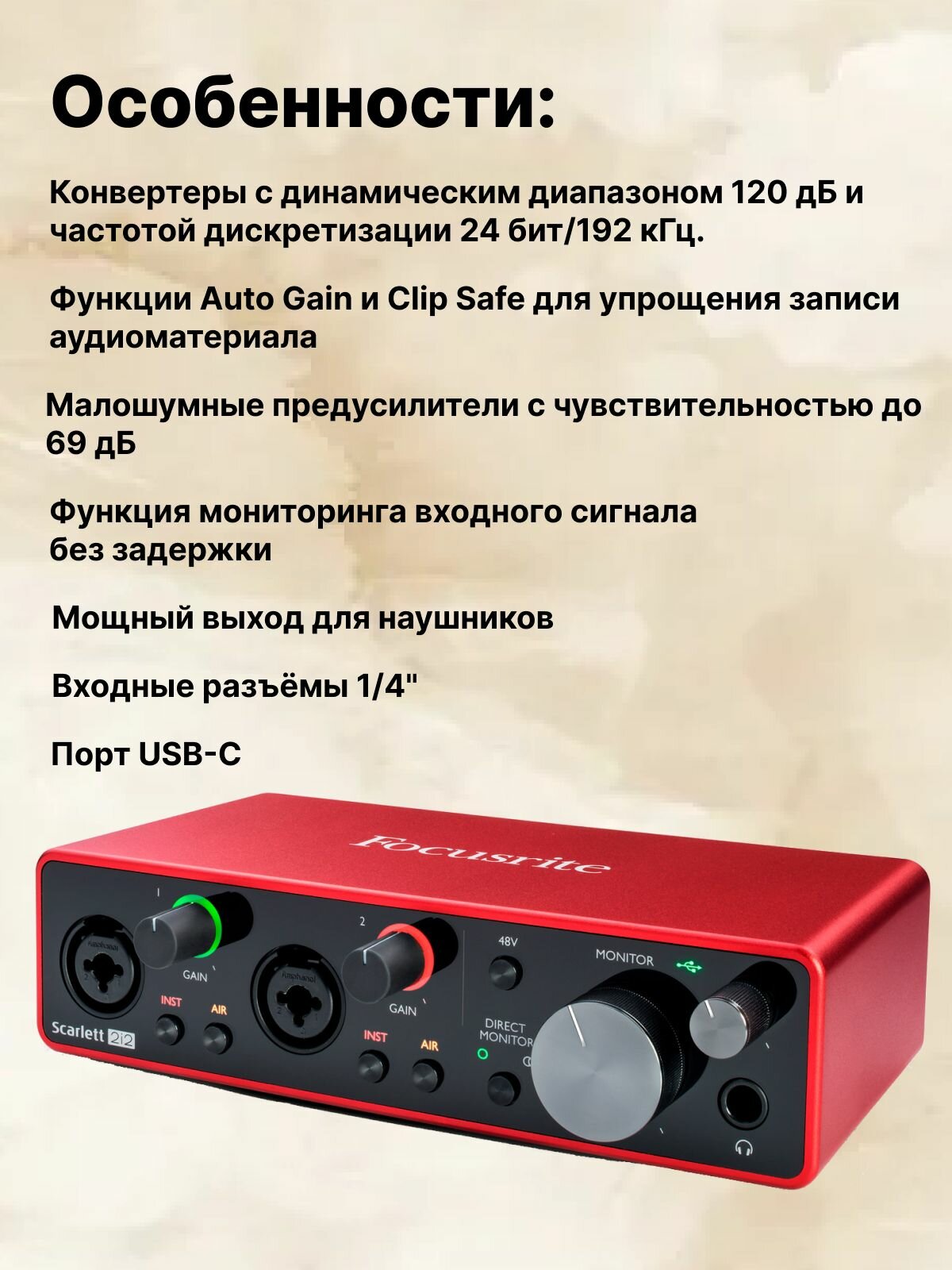 FOCUSRITE Scarlett 2i2 3rd Gen аудио интерфейс USB, 2 входа/2 выхода