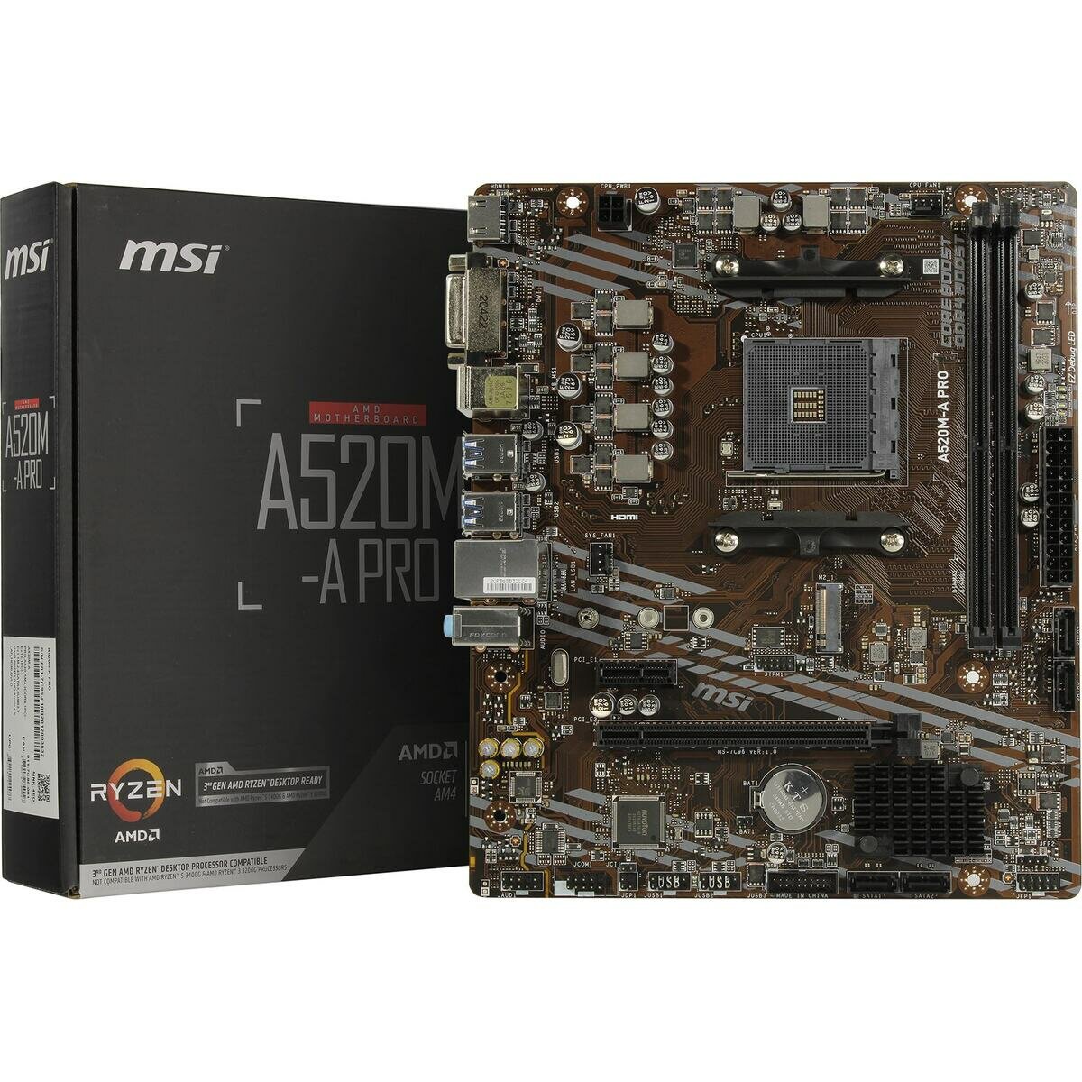 Материнская плата MSI A520M-A PRO (SocketAM4,AMD A520,mATX,2DDR4,M.2,PCI-E16,PCI-E,HDMI,DVI,PC4600)