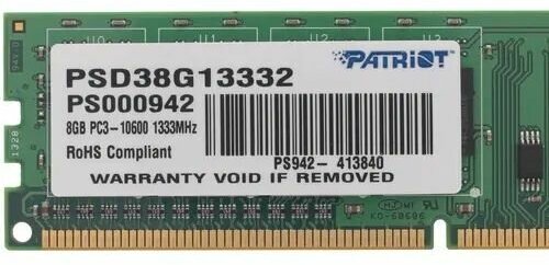 Оперативная память для компьютера Patriot PSD38G13332 DIMM 8Gb DDR3 1333MHz информация:
