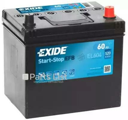 EXIDE EL604 EXIDE EL604 EFB_аккумуляторная батарея 19.5/17.9 евро 60Ah 520A 230/173/222 Carbon Boost 2.0\