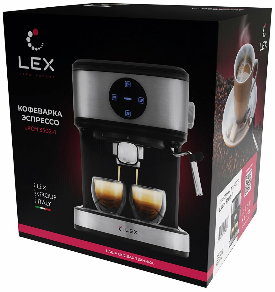 Кофеварка рожковая LEX LXCM 3502-1 черный [используемый кофе - молотый, 850 Вт, 1.5 л, капучинатор р