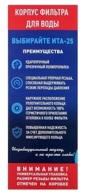 Отзывы на Корпус для фильтра ITA Filter F20125-1, для холодной воды, 15 л/мин, до 35° С, 1". В наборе 1шт.