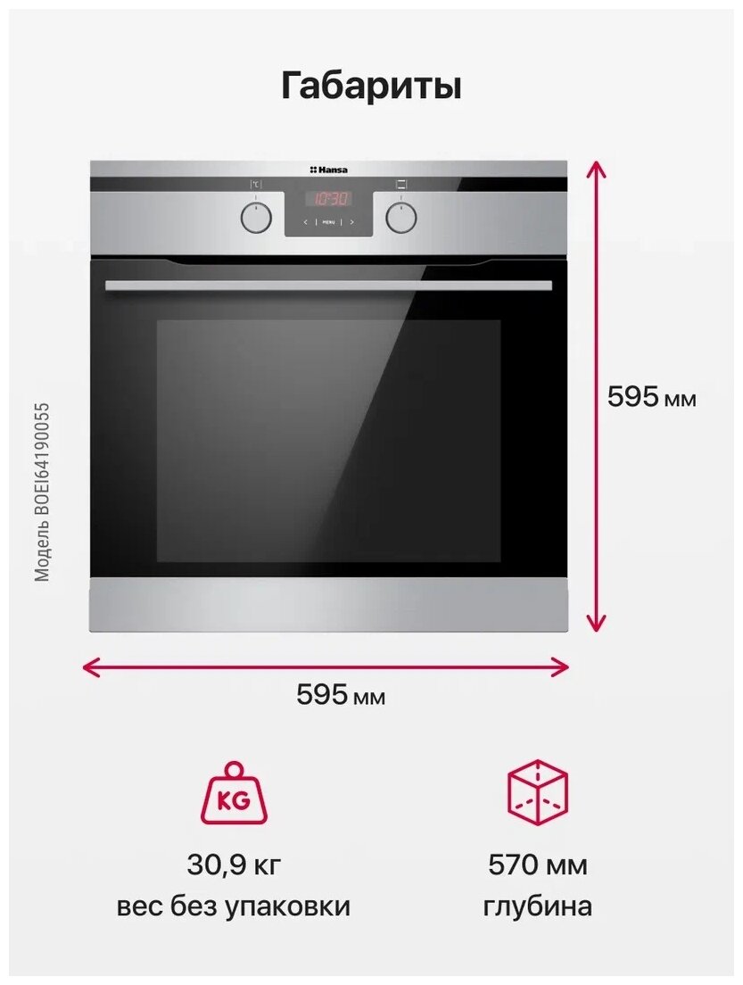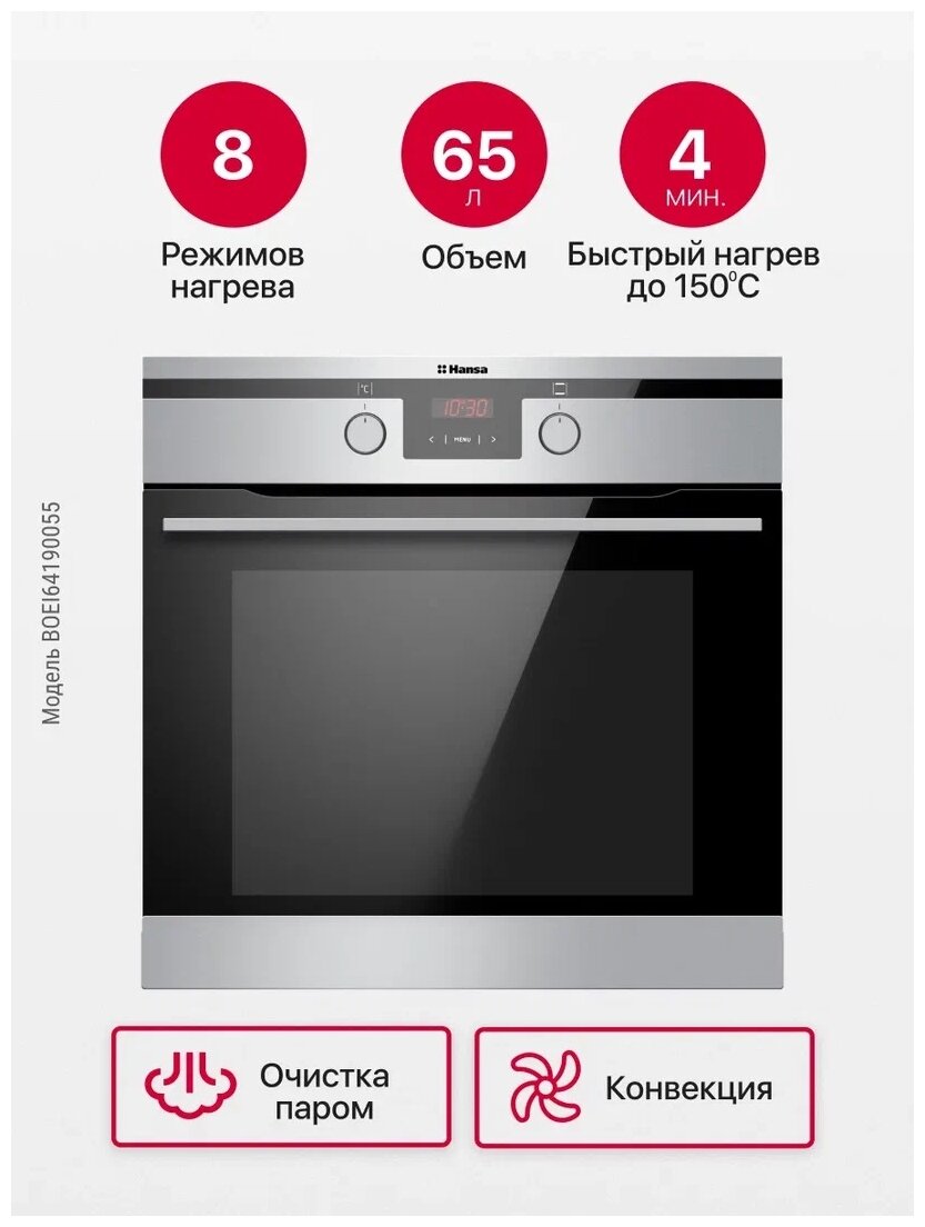 Духовой шкаф Электрический Hansa BOEI64190055 серебристый информация: