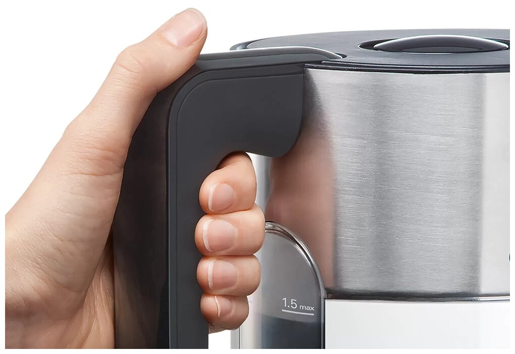 Bosch TWK8613P Чайник,1.5л, 2400Вт, черно-серебристый