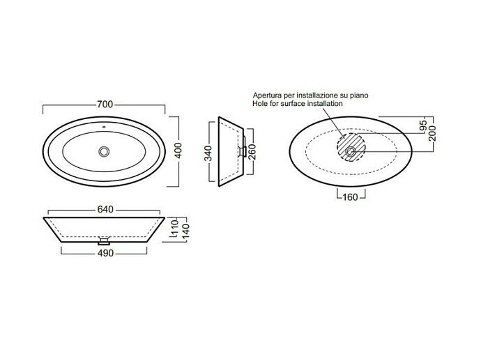 Раковина накладная из натурального камня Black Swan, Espera (59x31)