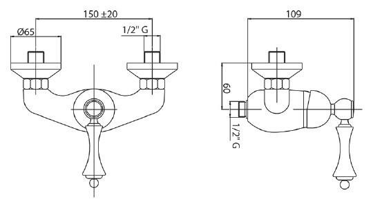 Смеситель на раковину настенный Эверест B46-350 с круглым поворотным изливом, кран-буксы 1/2", хром