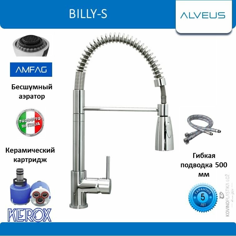 Кухонный смеситель Alveus Billy-S (хром) с выдвижным изливом и душем 22 515 ₽