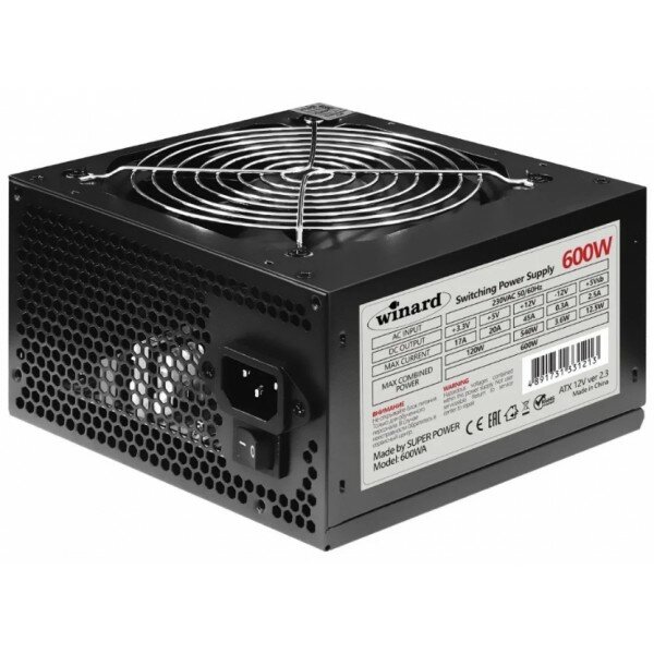 Блок питания Winard 600W (600WA) черный - 600 Вт, EPS12V, 20 + 4 pin, 4 pin CPU, 3 SATA, 6 pin PCI-E