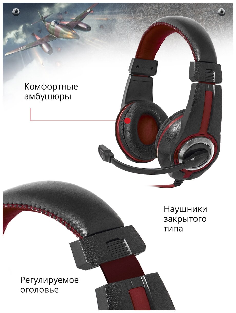 Наушники с микрофоном (гарнитура) DEFENDER Warhead G-185, проводные, 2 м, стерео, чёрно-красные
