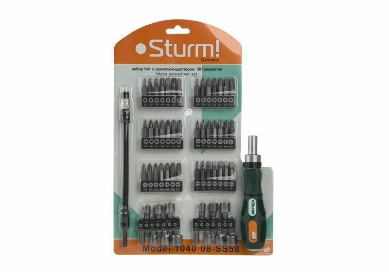 Набор отверточных бит STURM 1040-08-SS58 с рукояткой-адаптером 58 шт, блистер
