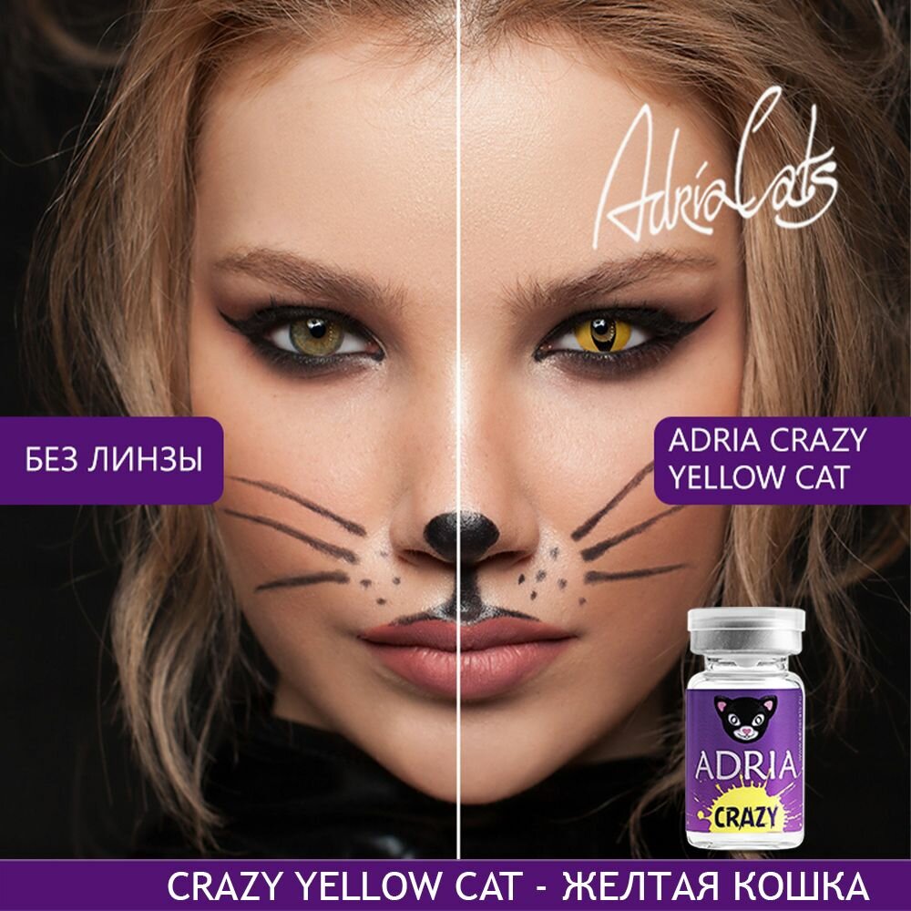 10 цен на Контактные линзы цветные ADRIA, Adria Crazy, Квартальные, YELLOW CAT, -0,00 / 14 / 8,6 / 1 шт.