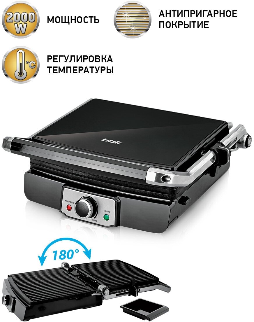10 цен на Электрогриль BBK BEG2001 черный, 2000Вт, мех.упра