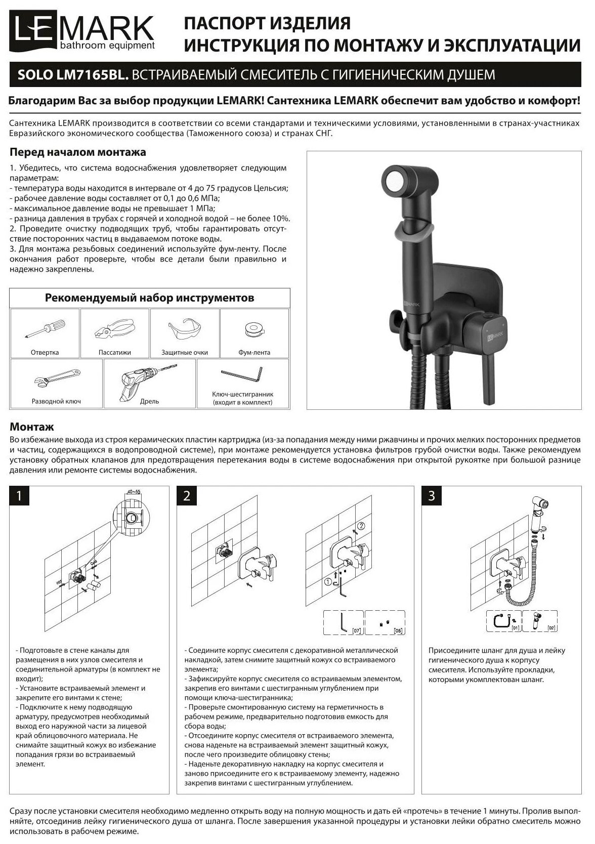 Lemark Solo Смеситель с гигиеническим душем, встраиваемый Lm7166bl . информация: