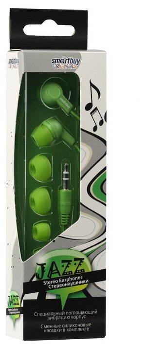 Внутриканальные наушники Smartbuy JAZZ, зеленые, 3 пары силиконовых вставок (SBE-720)/60 139 ₽