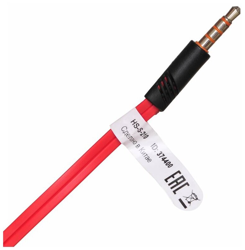 Наушники-гарнитура OKLICK D1R красные, с плоским кабелем и подключением 3.5 мм