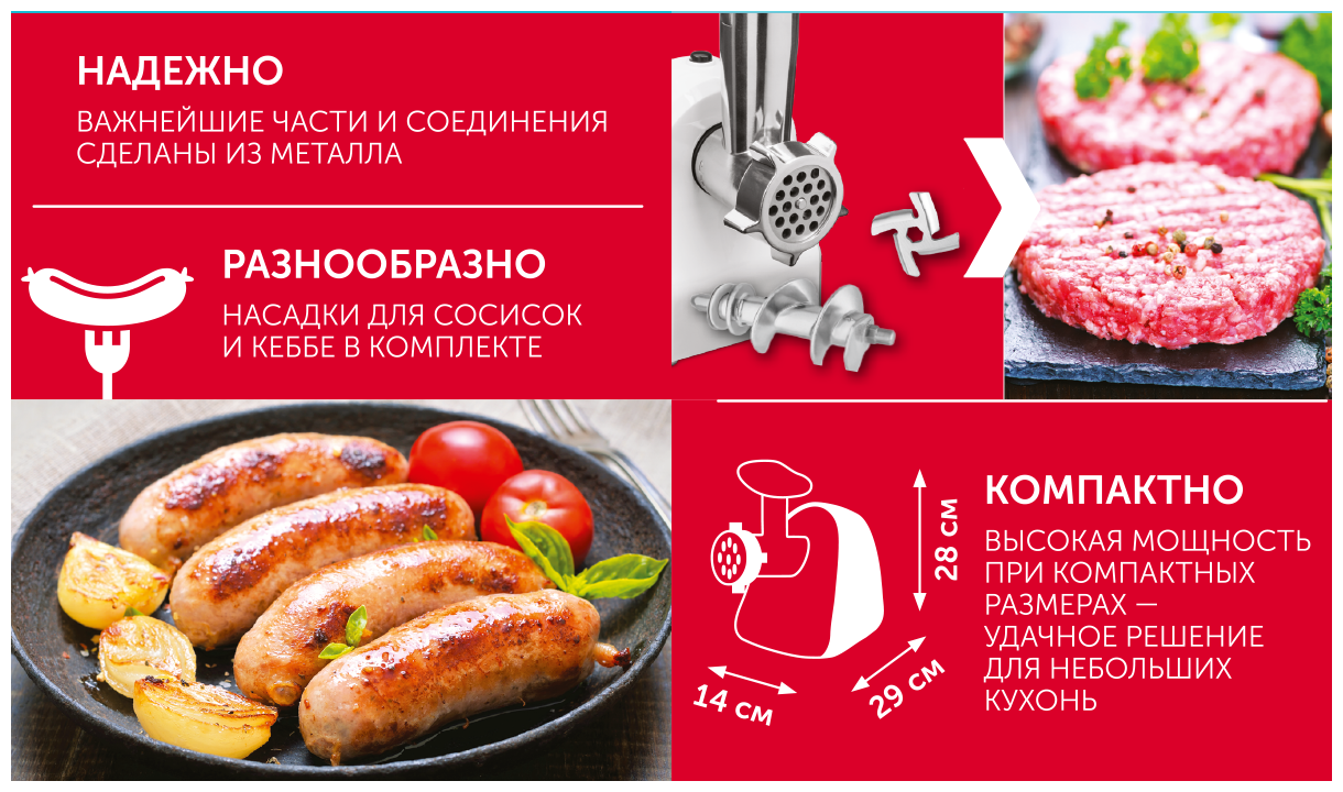 Мясорубка Аксион М321, 1500 Вт, реверс, защита двигателя, насадки для кеббе и колбас
