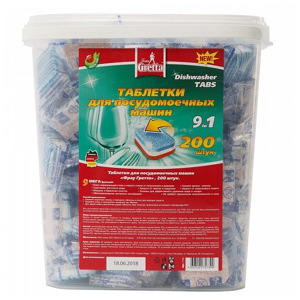 Таблетки для посудомоечных машин Frau Gretta "9 в1", 200 шт 3957430 информация: