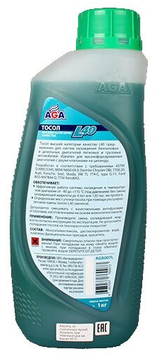 AGA AGA007L AGA Антифриз L-40, готовый к применению, зеленый, -40С (1L)