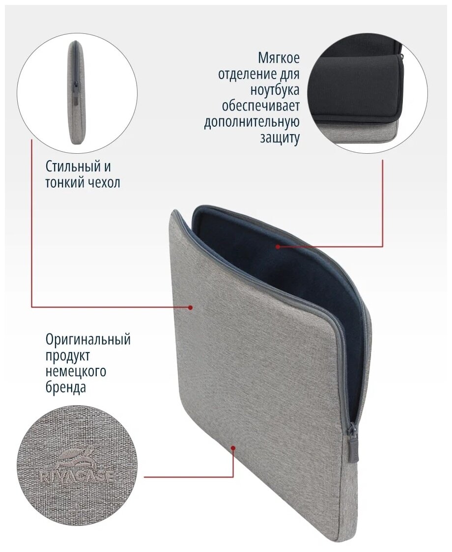 RIVACASE 7703grey/ Чехол для ноутбука до 13,3"/Водоотталкивающая ткань/Универсальный чехол