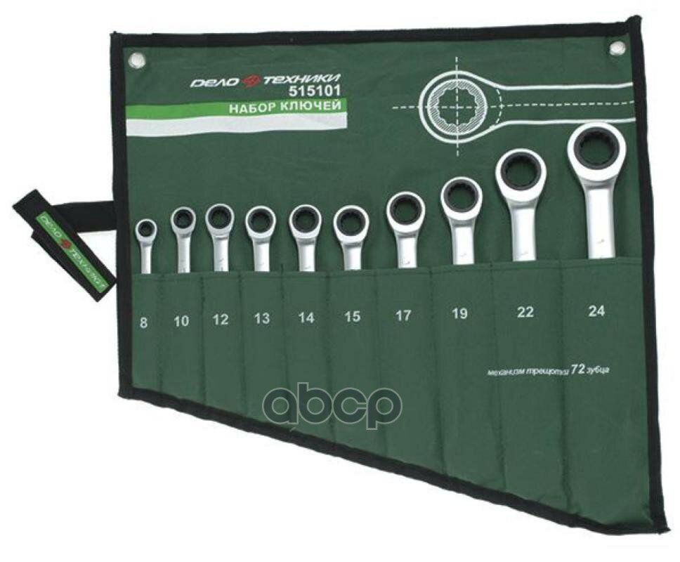 Дело техники 515101 набор ключей комб.трещоточных 10 шт(8 10 12 13 14 15 17 19 22 24мм) тетр.сумкадт