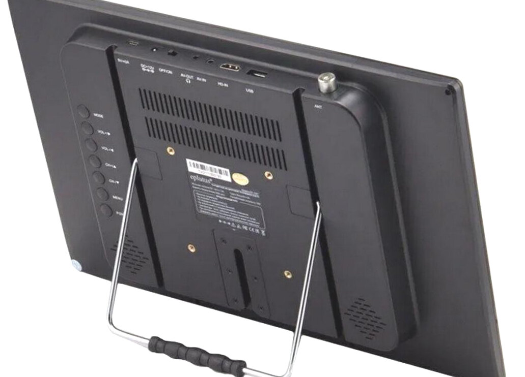 Телевизор Эплутус 143(Т)-EP (E2370EU) с TFT ЖК 14.1-дюймовым экраном и встроенным цифровым тюнером Т2 и аккумулятором 1500 мАч. Воспроизведение с USB