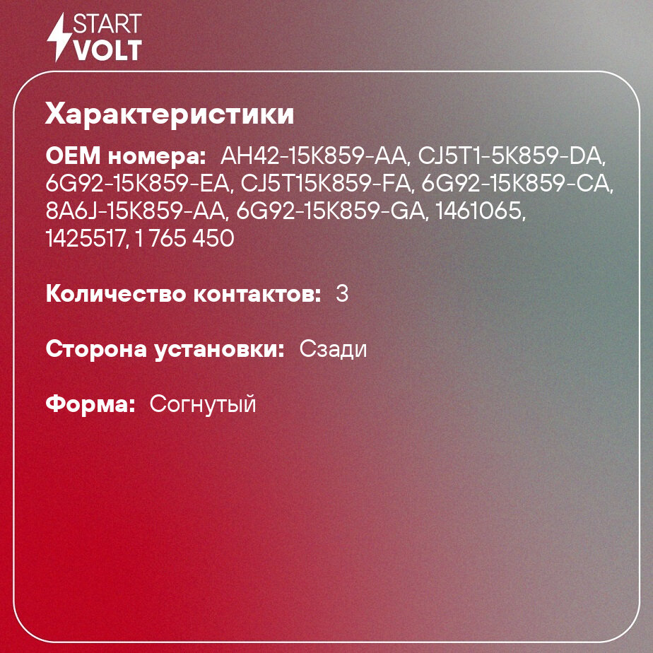 Датчик парковки для автомобилей Ford Mondeo IV (07-) задний VS-PK 1079 StartVolt информация: