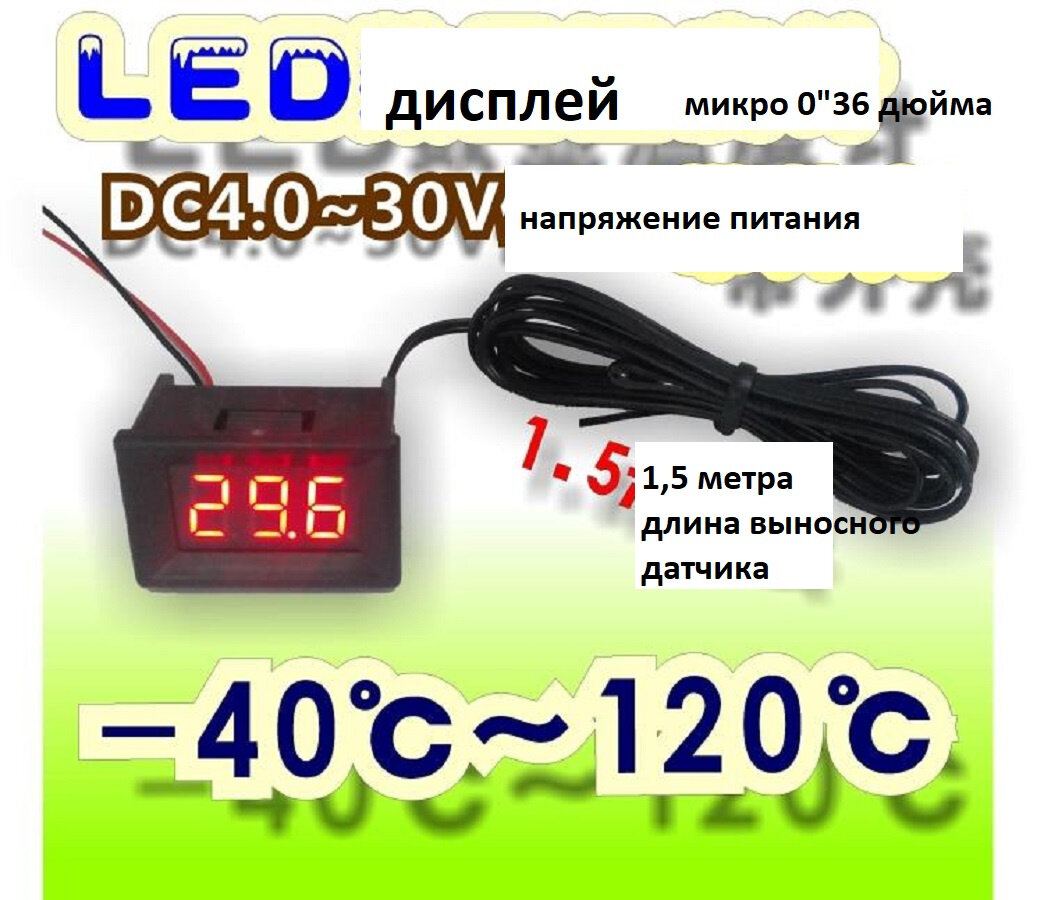 Отзывы на Термометр цифровой микро 0,36 с водонепроницаемым датчиком Т:-40 +120 С, DC: 4-30V