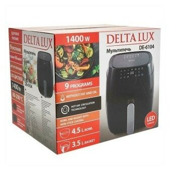 Мультипечь DELTA LUX DE-6104 черный: led-дисплей, чаша 4,5л, корзина 3,5л, серносрная панель упр.(2) 7 451 ₽