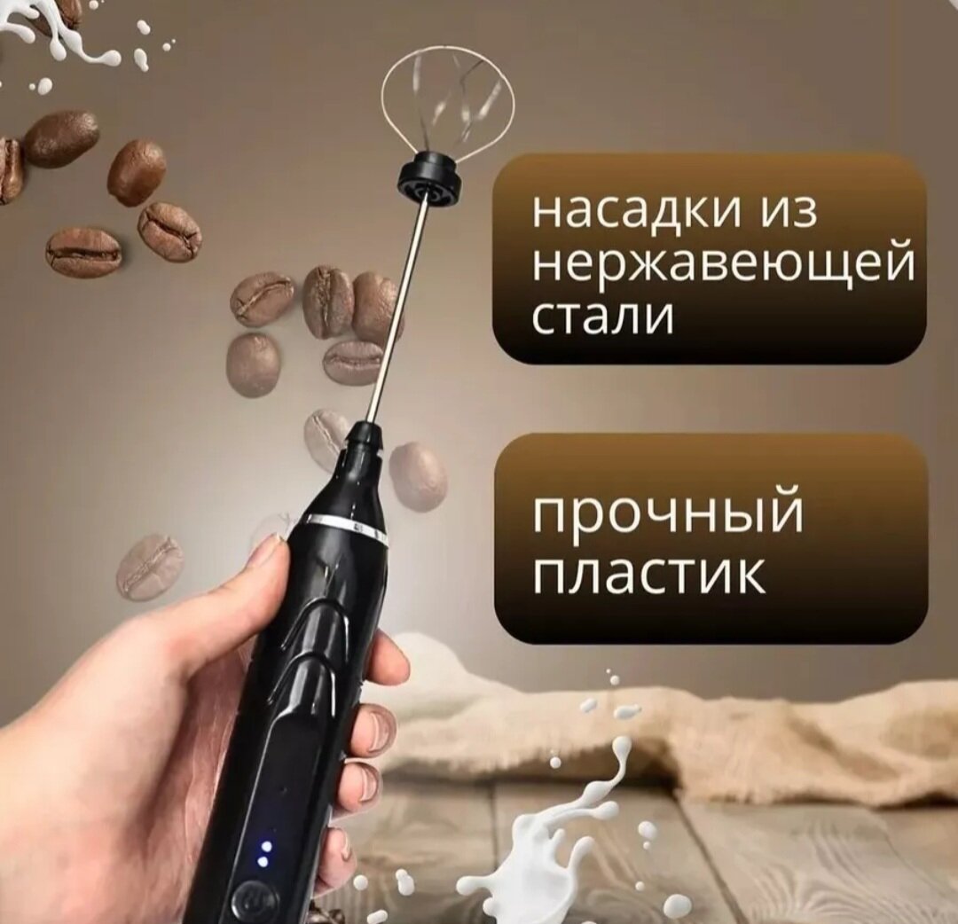Вспениватель для молока, сливок и яиц премиальный. Капучинатор, венчик, мини-миксер информация: