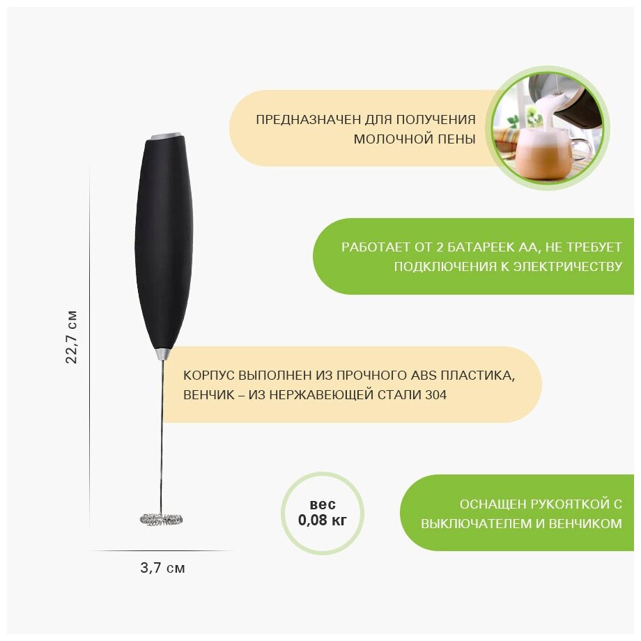 Капучинатор Viatto VA-MF460 / вспениватель для молока ручной / мини миксер взбиватель сливок, пены для кофе информация: