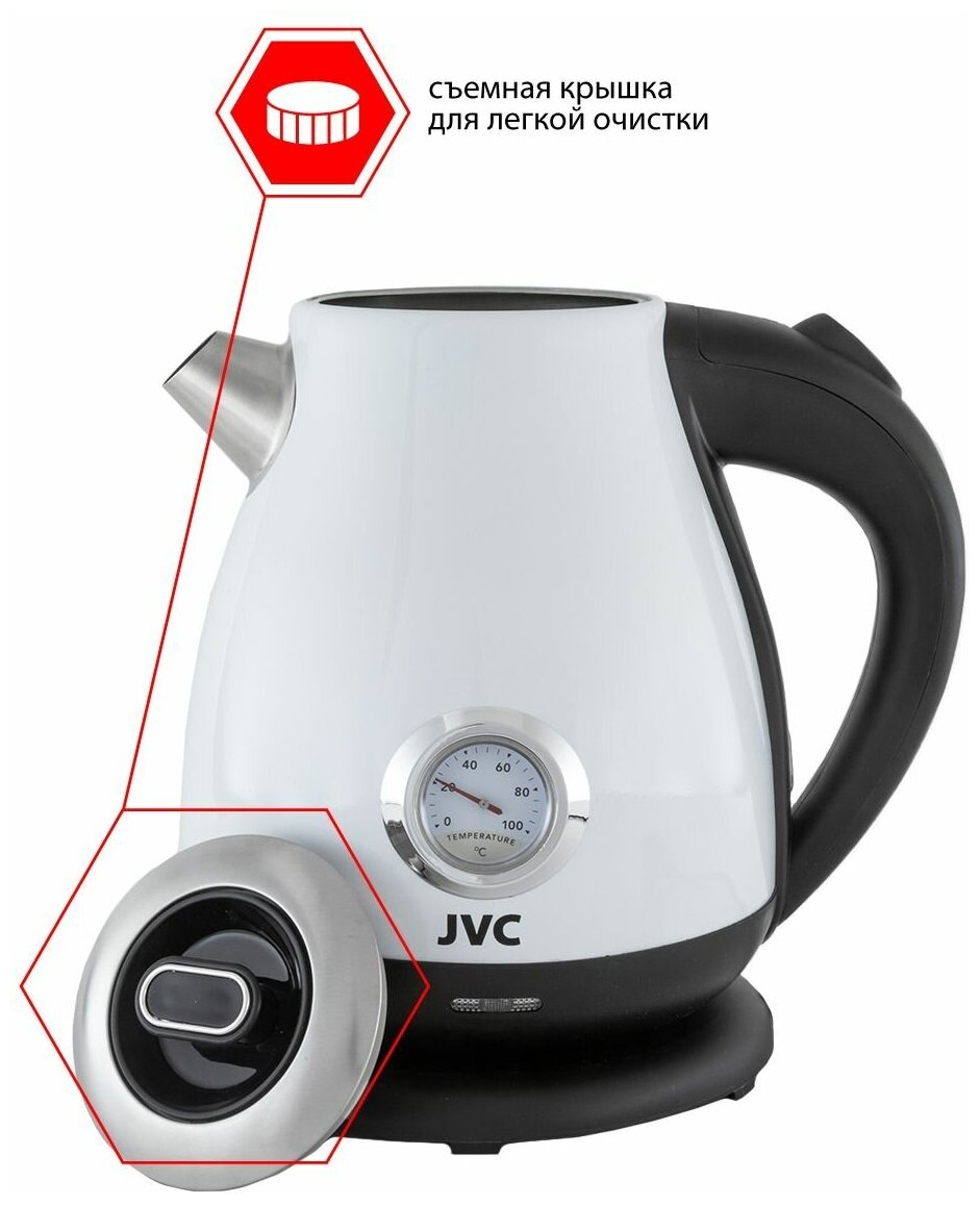 Чайник электрический JVC 1.7 л с датчиком температуры нагрева, ретро-дизайн, подставка с вращением на 360 градусов, 2200 Вт